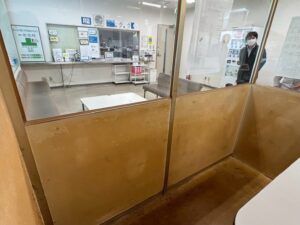 日常的に使用されるスペースのため、ヤニ汚れが壁や床に蓄積し、見た目だけでなく臭いも気になる状態になっているとのことでした。来客時の印象も考え、この機会にしっかりと美装したいというご要望でした。