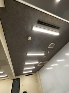 通常は照明カバーを付けたまま施工するケースもありますが、今回は一度すべて取り外して施工しました。